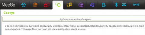 Панель "Статус" позволяет управлять учетными записями и статусом в социальных сетях.
