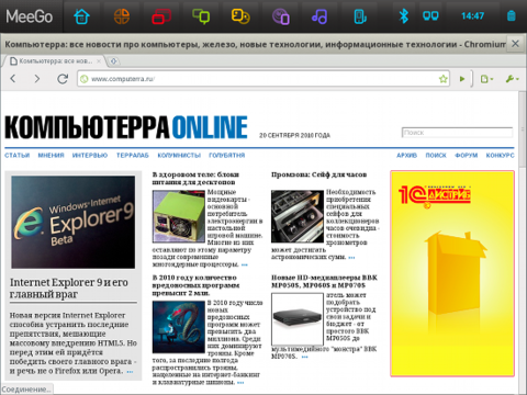 После загрузки системы в режиме командной строки нужно нажать "Alt+F1", ввести указанные при установке логин и пароль и отдать команду sudo init 3. Теперь осталось установить утилиту wget (при помощи команды sudo yum install wget) и скачать специально собранную энтузиастами библиотеку libglx.so (wget http://202.112.3.1/libglx.so или wget http://www.adriannuta.com/wp-content/uploads/2010/08/libglx.so). Скачанный файл копируем в системный каталог: sudo cp libglx.so /usr/lib/xorg/modules/extensions. Также необходимо изменить права доступа к исполняемому файлу Xorg: sudo chmod u+s /usr/bin/Xorg. После перезагрузки системы (sudo init 6) запустится графический интерфейс MeeGo.