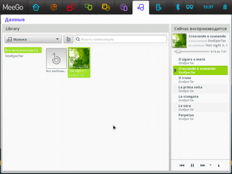 Панель "Данные" (в английском варианте - "media") управляет медиаплеером banshee.