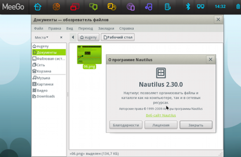 В качестве менеджера файлов в MeeGo используется Nautilus.