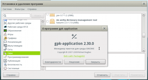 Для подключения источников приложений используется "Каталог программ", а менеджер gpk-application позволяет искать, устанавливать и удалять пакеты.