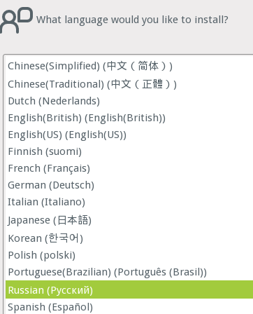 Первым делом потребуется указать язык программы установки (доступна русская локализация).
