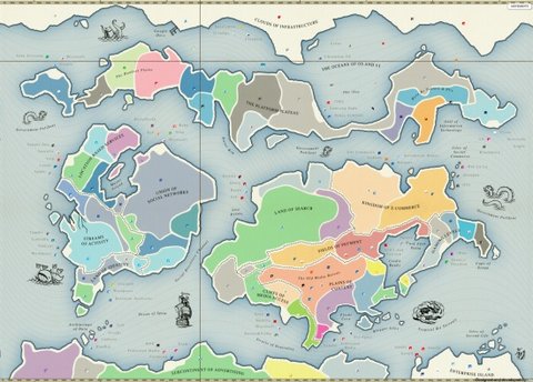 Цукерберг также сделал забавное замечание относительно карты интернета, в которой киберпространство поделено между ИТ-компаниями. Эта карта висела на стене студии, в которой проходило интервью. "Ваша карта неверна", - сказал он. По его словам, большая часть её не должна была принадлежать никому. "Мы преумножаем свою ценность, а не забираем её у кого-то ещё", - сказал Цукерберг.
