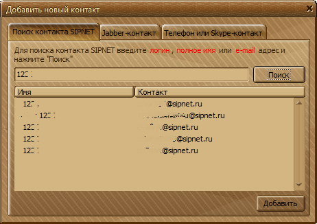 Основное окно программы напоминает некоторые клиенты для обмена мгновенными сообщениями, хотя основная задача программы - совершение звонков.