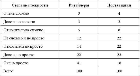 При анализе данных оказалось, что в этом случае всякое единство оценок между двумя сторонами разрушилось: каждая сторона склонна чаще указывать на своих оппонентов как на получающих более крупные выгоды; 56 % ритейлеров убеждены, что уровень рентабельности выше у производителей и дистрибьюторов, а среди последних 48 % уверены в обратном, указывая на розничные компании. Считают, что уровень примерно равный, 29 % ритейлеров и 16 % поставщиков. А на более высокий уровень рентабельности на своей стороне указывают, в свою очередь, 16 % ритейлеров и 36 % поставщиков. Перед нами очевидная зона несогласия и косвенного проявления конфликта при высокой статистической значимости различий (см. табл. 3.7).