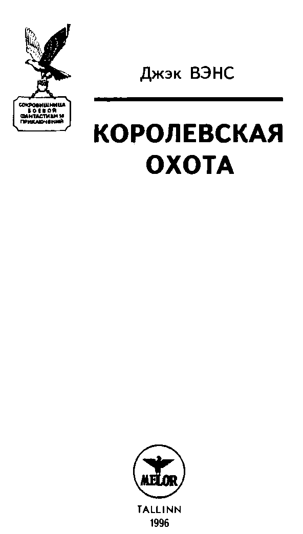 Джэк ВЭНС «Королевская охота». Перевод с англ. Составитель А. Саяпин. Таллинн: «Мелор». 1996, 368 стр., ил. («Сокровищница боевой фантастики и приключений»).