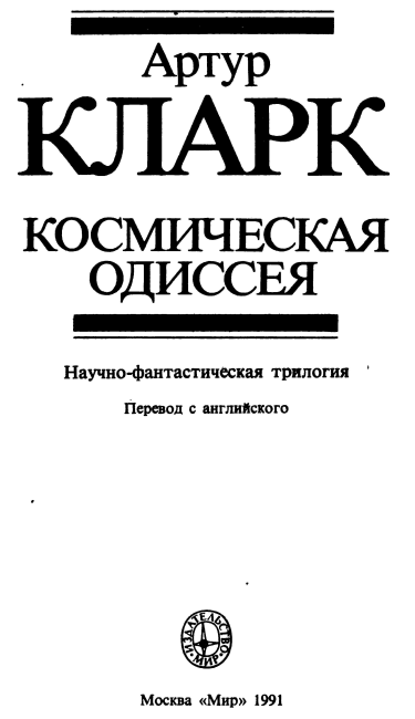 Кларк бесконечно верит в мощь человеческого духа, в неисчерпаемость людских возможностей. Но в то же время он сознает, что в необъятности Вселенной человеческие свершения могут затеряться. А в чем же тогда суть всех наших устремлений? По Кларку — в слиянии с каким-то Вселенским Сверхразумом. Этой теме и посвящен роман «2001: Одиссея один». Ту же тему продолжают и две последующих «Одиссеи» писателя: «2010: Одиссея два» (1984) и «2061: Одиссея три» (1987), составляющие представленную в настоящей книге трилогию. В предисловии к третьей «Одиссее» Кларк писал, что «все три произведения» не продолжают одно другое, «их следует рассматривать как вариации на одну тему, где происходят