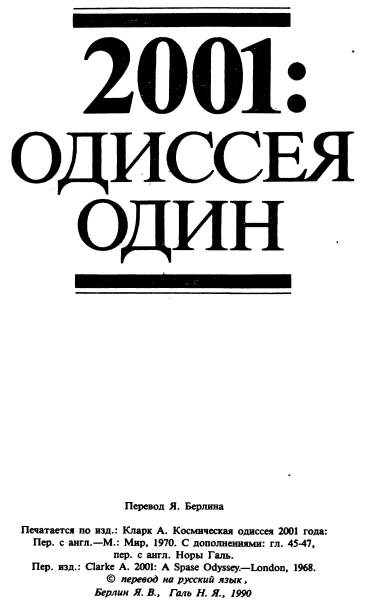 Печатается по изд.: Кларк А. Космическая одиссея 2001 года: Пер. с англ.—М.: Мир, 1970. С дополнениями: гл. 45–47, пер. с англ. Норы Галь.