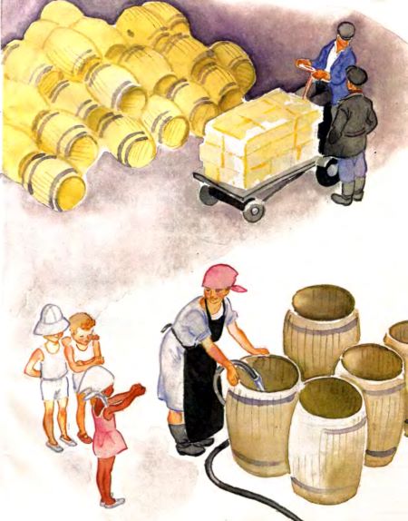Люба продолжала взвешивать рыбу, а Макарка и Юра продолжали кидать в бочки лавровый лист, перец и корицу.