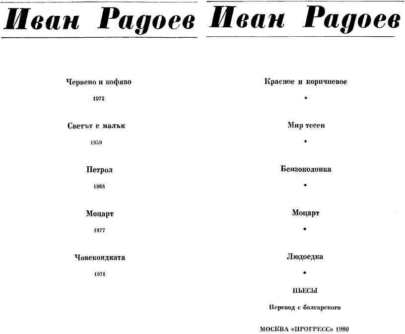 Имя болгарского поэта среднего поколения Ивана Радоева (род. в 1927 г.) последние два десятилетия прочно связано с театром. Он — один из создателей в современной болгарской драматургии лирико-поэтического направления, так называемой «поэтической волны». Направление это родилось как своеобразная художественная реакция на решения Апрельского пленума ЦК БКП 1956 года, способствовавшие подъему общественной и культурной жизни в стране.