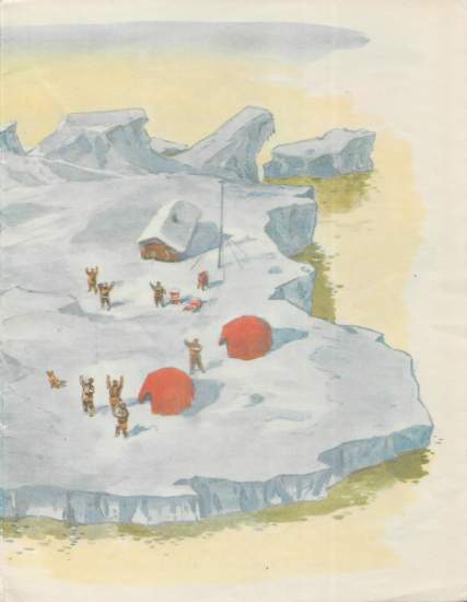 Прошло время. Пошёл Андрюша однажды с папой в кино. Картина была про отважных полярников. На экране появился самолёт. Летит над белыми снегами Арктики, наверное, домик полярников ищет. А домика всё не видать. Вдруг внизу, под крылом самолёта, как цветок что-то заалело.