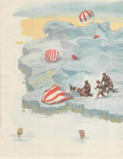 Самолёт покружил над полярниками. Фонариками вспыхнули в небе зонтики парашютов.