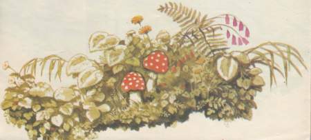 — И гриб сыроежка своей ярко-синей шапкой нам подсказывает: „Вот я где! Вот я где!“