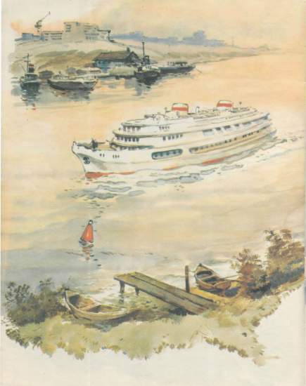 — Река здесь неглубокая, и теплоход может невзначай сесть на мель. Вот и расставляют по всей реке яркие поплавки-бакены, а ночью ещё и лампочки на них зажигаются. „Вот мы где! Вот мы где!“, — говорят бакены и безопасную дорогу капитанам указывают.