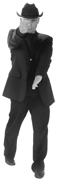 На атаку противника, идущую к цели, выполните отбивающее действие сверху-вниз изнутри наружу левой рукой влево, около запястья или предплечья. Само движение отбивающей руки невелико – около 15–20 см. Но в то же время во время блока нужно вращать туловище справо-налево, чтобы увеличить размах отбивающего движения. Одновременно с блоком нанесите прямой удар кулаком правой руки в голову противника.