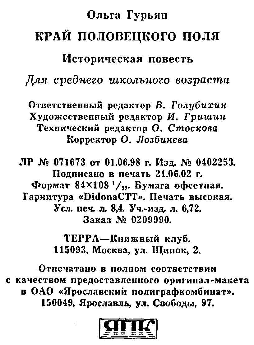 Прощай, Игорь Святославич, храбрый князь и мудрая княгиня Евфросиния! Ядрейка с Настасьюшкой, с сыном Митюшкой. Вахрушка с матушкой, с батюшкой. Овлур с молодой женой, Алешка с новыми почестями. Всем вам мой земной поклон.