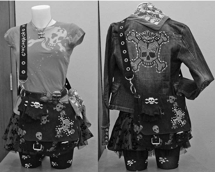 Комментируя процесс изменения смыслов символов в субкультурах, Хебдидж пишет: «В субкультурах вещи из раза в раз неизбежно переосмысляются как „стиль“» [411] . Начиная с 25 февраля 2007 года модное приложение к (лондонской) газете The Sunday Times объявило, что мода на скелеты идет на спад. Между тем в том же году в летних каталогах Victoria’s Secret и Delia демонстрировались купальники, украшенные черепами и скрещенными костями, а в осенней коллекции Alloy — топы с пиратской эмблематикой. В каталоге Oriental Traders пиратским товарам для детей и взрослых неизменно отводится несколько полных страниц. Изучение ассортимента магазинов Филадельфии и Мэриленда показывает, что пиратская символика по-прежнему популярна на рынке модной одежды и аксессуаров, особенно в категории товаров для детей и подростков (ил. 11.2).