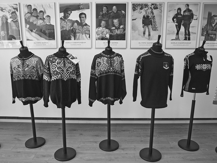 12.2. Старые модели свитеров от Dale of Norway в заводском музее, открытом для посещения. Автор фотографии: Туне Скодал Тобиассон
