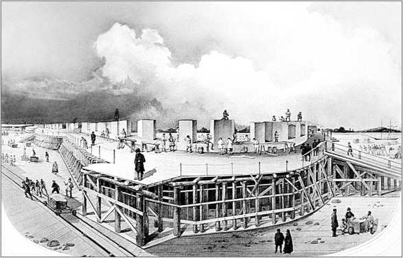 И все-таки оборону Кронштадта многие специалисты считали недостаточной. Они считали возможным прорыв части вражеских кораблей на внутренний рейд, где они могли бы подавить сопротивление поставленных открыто орудий. Поэтому в 1841 г. возникла идея строительства на полубастионе, за воротами в Купеческую гавань, трехъярусной казематированной батареи с ярусом открытой обороны наверху. Она могла бы встречать корабли еще на подступах к внутреннему рейду. Этот полубастион возвели в конце XVIII в., заменив вскоре деревянное строение каменным. Проектировал батареи генерал-лейтенант М.Г. Дестрем, но император постоянно контролировал эту работу и периодически давал весьма ценные указания. Однако на испытаниях нагрузкой угол полубастиона дал трещину, а каменная стенка наклонилась в сторону фарватера. Поэтому в 1843 г. Николай принял решение несколько изменить расположение батареи и поручил составить новый проект молодому инженеру И.А. Заржецкому (1800–1869). Строительство батареи, получившей имя «Князь Меншиков», длилось семь лет. Заржецкий за эту работу получил орден Св. Владимира III степени и 5000 руб.