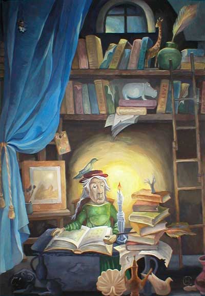 Удивление Моша Терпина достигло величайшей степени, когда Проспер Альпанус стал водить его по дому, показывая свою библиотеку и другие весьма диковинные вещи, и даже произвел целый ряд изящных опытов с редкостными растениями и животными.