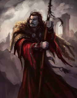 Волшебник с суровым выражением лица и большими усами начинает традиционное приветствие для участников турнира и зрителей. Его массивная алая мантия и меховая накидка смотрятся довольно эпатажно на фоне утонченных мантий других чародеев. Ну, статус позволяет ему выделяться, даже посох у него какой-то кривой и облезлый.