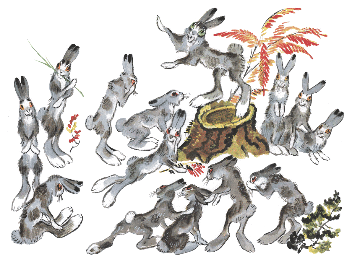 — Так вот, — сказал Старый заяц, — сейчас мы пройдём через весь лес. Если нас никто не испугается, если мы и вправду самые трусливые на свете, то мы пойдём к болоту и утопимся. Идите все за мной.