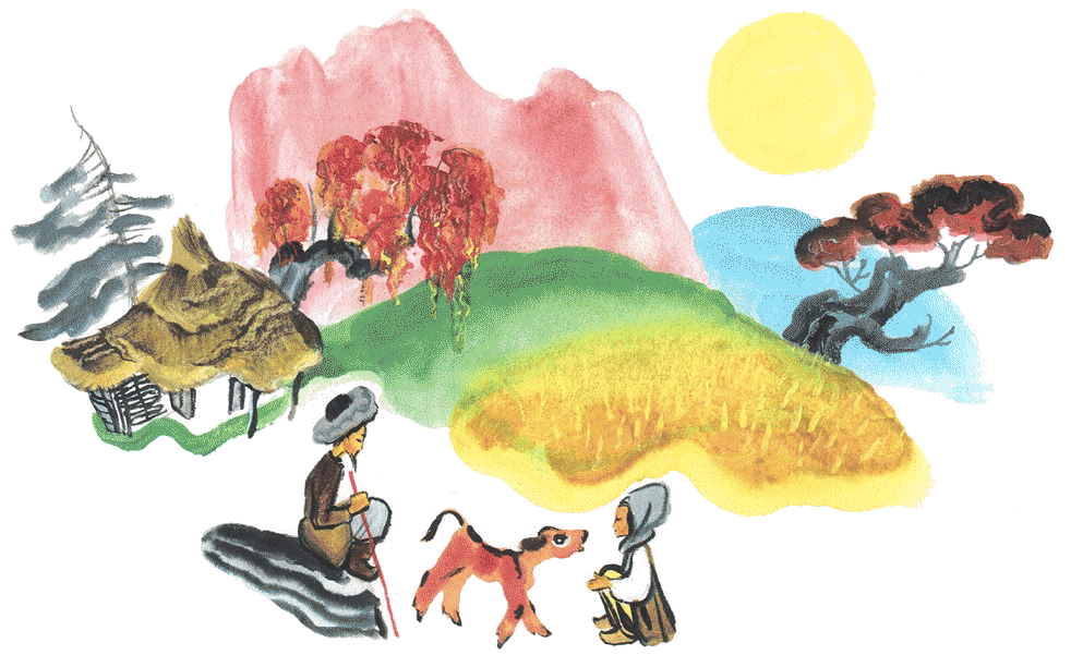 В маленькой фанзе[1] в горах жили старик со старухой. У них ничего не было, кроме одной-единственной тёлки.