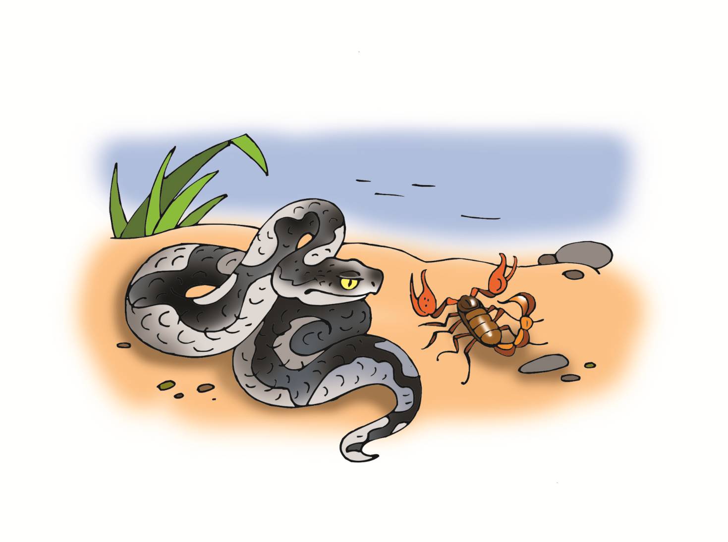 Согласилась Гадюка и Скорпион взобрал-ся к ней на спину.