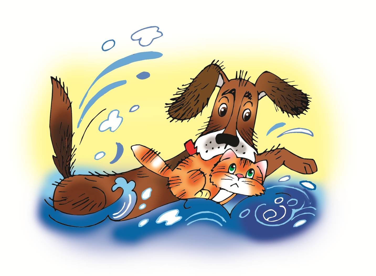 Бросился Пёс спасать тонущую в речке Кошку. Схватил её за шиворот покрепче. Плывёт что есть силы к берегу, а Кошка воет от страха и боли. Уж больно острые зубы у Пса. Выволок её на берег, а Кошка возмущается: