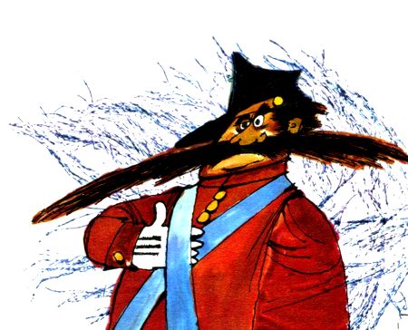 УСЛЫШАВ О САБЛЯХ, стражник оробел. Но ничего не поделаешь! Коли ты стражник, исполняй приказ, хоть бы пришлось головы лишиться.
