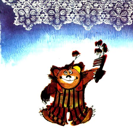 — Мастер и староста, — промолвило медвежье страшилище, — я появился на свет на скорую руку. Приятели мои сделали меня кое-как — тяп-ляп — из страха и воображения. Это не жизнь. Поглядите на эти ноги, на мою дымовую шёрстку! Ну, могу я так ходить? Прошу вас, пошлите меня в какую нивудь больницу либо в школу для страшилищ: пускай я тоже чем-нибудь приличным стану.