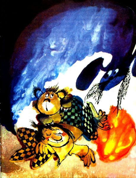 — Вот это славно, — говорит медведь. — Ты что, хочешь с нами ночевать?