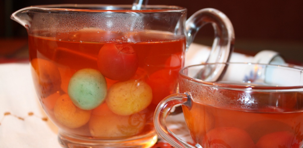 Подать компот (лучше теплый) вместе с фруктами (косточки из фруктов после приготовления компота, обязательно удалить).