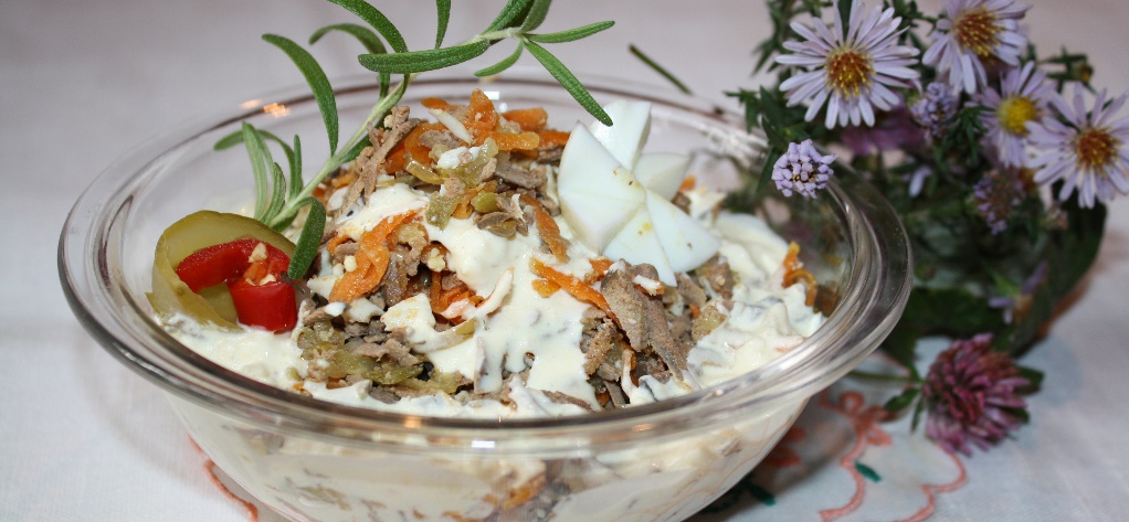 Салат из свиной печенки