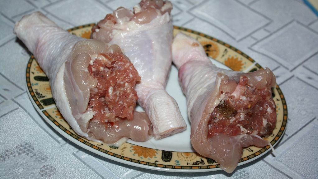 завернуть фаршированные ножки в фольгу, влить туда по столовой ложке бульона и запечь в духовке или сварить на пару. Аналогично можно приготовить куриные голени.Котлеты из курицы