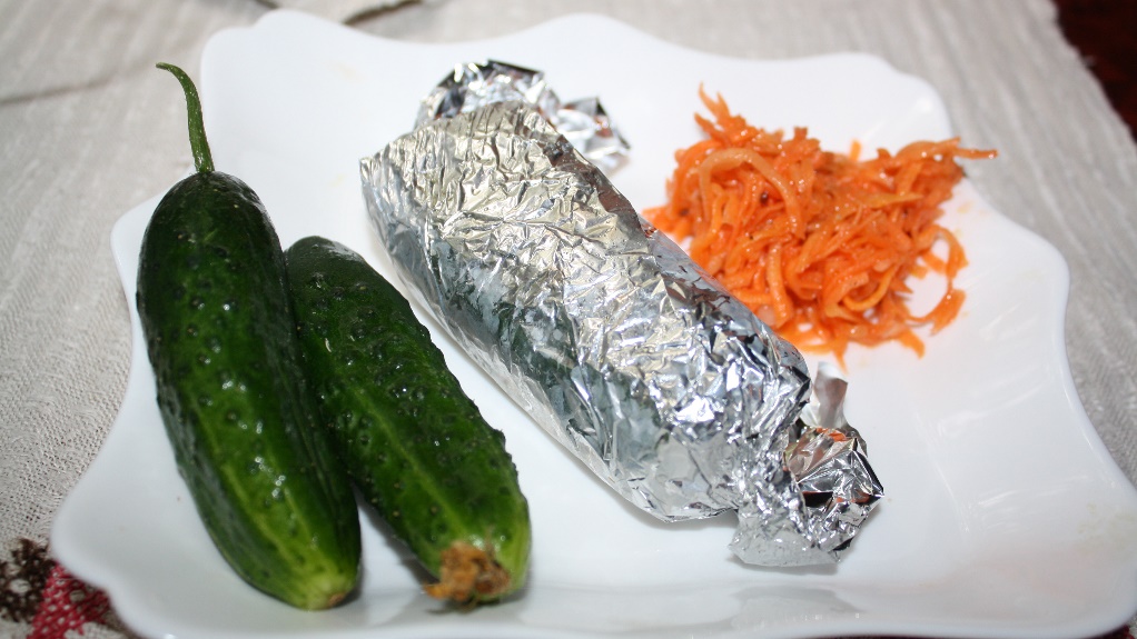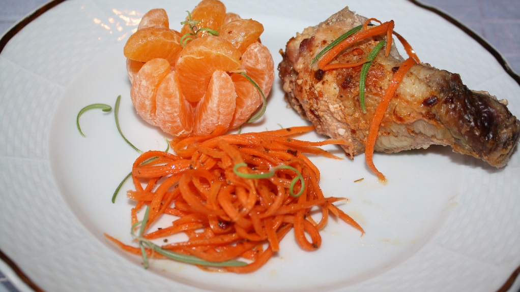 Морковь бланшировать в кипящей, подсоленной и подктисленной воде около 2 минут, очистить, натереть на терке.
