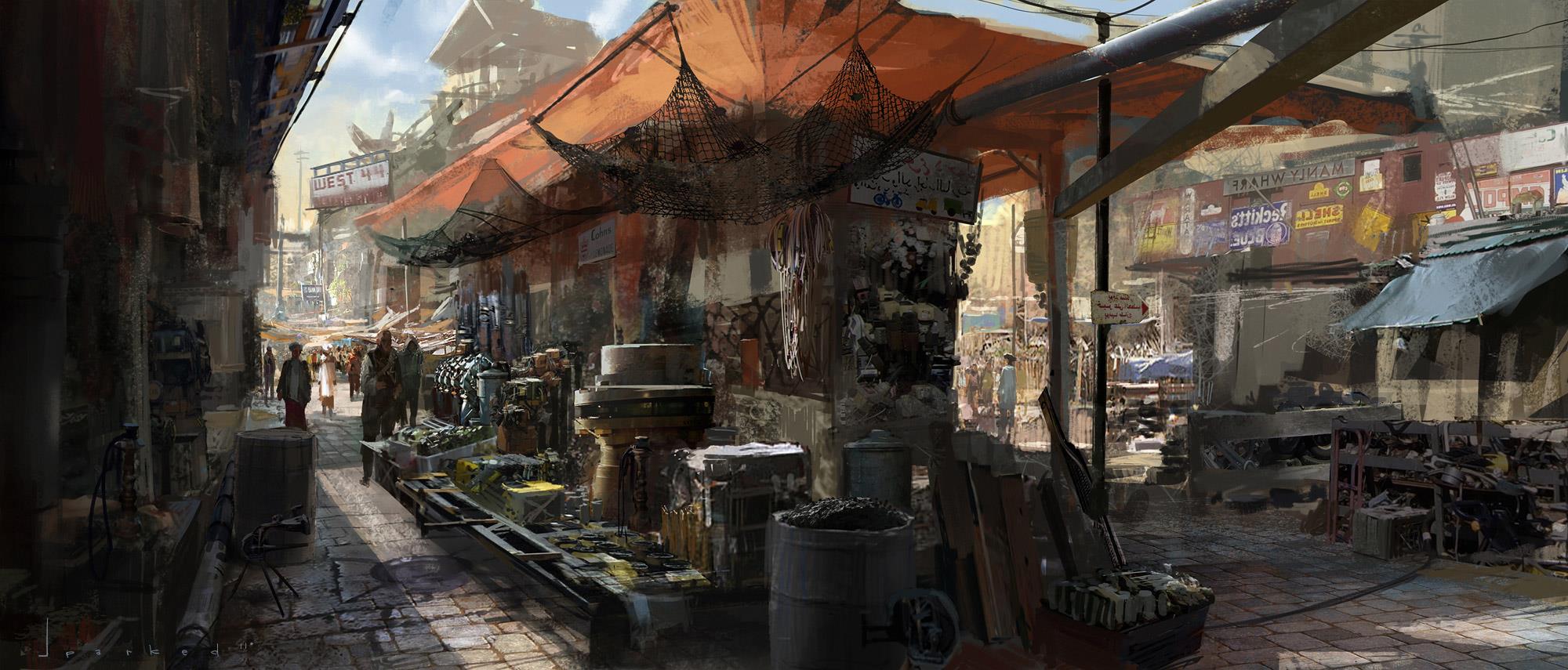 Рынок занимал почти всю ширину парапета. Тридцать метров пространства выглядели просторными только когда на них не нагромождали коробки, тенты, контейнеры, сложенные из досок небольшие лавки и прочие, формирующие тесный лабиринт, сооружения.