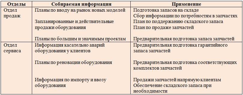 Табл. 1.1. Информация для обмена между отделами сервиса и продаж