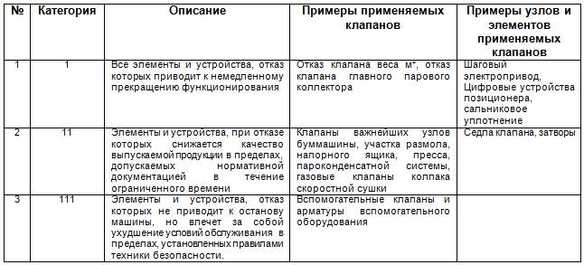 машины, так и постепенной потере эффективности. По классификации отказов бумагоделательных машин клапаны попадают во все категории, см. табл. 2.6.1.Табл. 2.6.1. Категории отказов клапанов в бумагоделательной машине