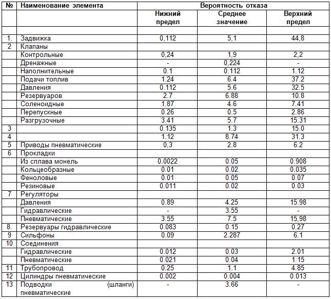 Табл. 2.6.2. Вероятность отказа клапанов и элементов контуров регулирования