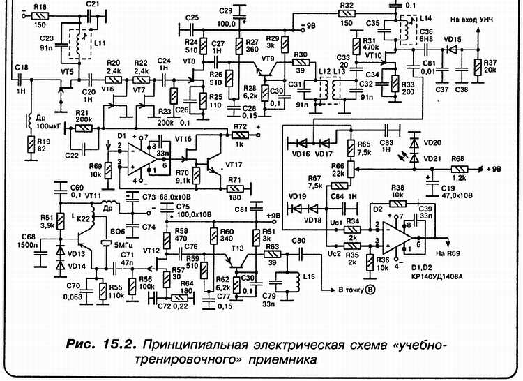 Кстати, заметим, что, хотя мы решили ограничиться только двумя диапазонами, забывать об их коммутации все равно нельзя. А нам следует переключать не только герконовые реле, но о многооборотный резистор ППМЛ (R25). Так что я привожу полную схему коммутации для «учебно-тренировочного» (рис. 15.4). Теперь возвращаемся к узлу U3.