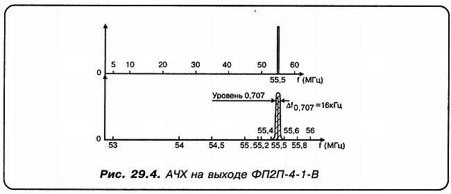 «С»: А теперь я хочу обратить ваше внимание на состав следующей платы, представленной на рис. 30.3. На ней расположены: заградительный фильтр на частоту 55,5 МГц; предварительный малошумящий широкополосный УВЧ; первый смеситель с диплексором; узкополосный малошумящий УПЧ1, в состав которого входит высокоселективный кварцевый фильтр ФП2П-4-1-В на частоте 55,5 МГц; второй смеситель с диплексором, настроенный на частоту 1,455 МГц. А также резонансный усилитель на jFET, вырабатывающий сигнал для АРУ-1.