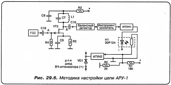 он используется, должны быть конструктивно выполнены ПО ВСЕМ ПРАВИЛАМ ВЫСОКОЧАСТОТНОЙ ТЕХНИКИ! Это значит — длина сигнальных цепей — минимально возможная. А экранирование — максимально эффективное. А из этого следует практический вывод — диод КА509 и непосредственно связанные с ним компоненты должны располагаться на ОТДЕЛЬНОЙ печатной плате.«Н»: Но тогда и цепь АРУ-1 нужно расположить поближе?