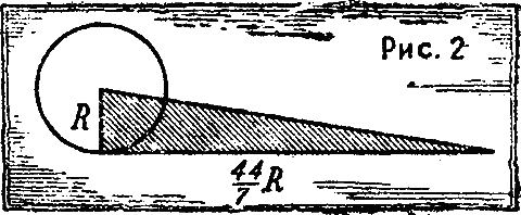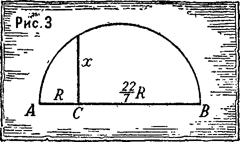 Великий математик древнего мира Архимед (III век до нашей эры) первый поставил задачу о квадратуре круга на научную основу. В сочинении «Измерение круга» он доказал, что круг равновелик прямоугольному треугольнику, один катет которого есть радиус круга, а другой — выпрямленная окружность (рис. 2). Способ выпрямления окружности указан Архимедом в том же сочинении: длина окружности меньше 31/7 диаметра, но больше, чем 310/71 диаметра. Другими словами, Архимед доказал, что отношение длины окружности к ее диаметру, т. е. число, которое принято теперь обозначать греческой буквой (ПИ), заключается между 310/71 и 31/7. Высший предел, 31/7, настолько близок к истинной величине, что им часто пользуются на практике еще в наши дни; его называют «Архимедовым числом».