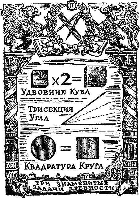 рассматривать отныне представляемых ей решений задач удвоения куба, трисекции угла, квадратуры круга, а также машин, долженствующих осуществить вечное движение».Двухтысячелетние поиски решения