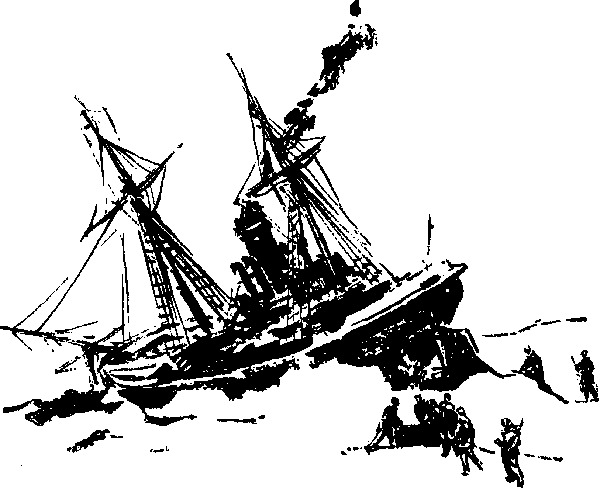 С парохода можно было увидеть блеск выстрелов, но звук не долетал — все терялось в реве бури. Кто знает, чего хотели эти двое. Может быть, они требовали, чтобы за ними послали шлюпку. А может быть, только хотели напомнить про себя, чтобы после шторма им поскорее прислали помощь.