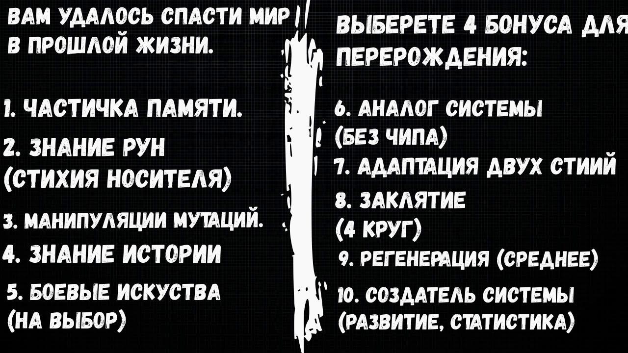 Второе — знание рун (стихия носителя). Вещь полезная и однозначно стоит брать. Особенно помня о том, сколько времени и сил уходит на их изучение. В прошлой жизни ему с помощью системы не хватило полугода. Сейчас же неизвестно, в какую ситуацию он попадёт, так что однозначно это необходимая функция станет его.
