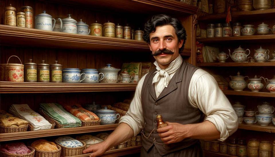 Вот сюда, заходим.Первая же дверь со стеклянными вставками и декоративной резьбой привлекла внимание Мишани. Игривый перезвон колокольчика заставил продавца оторваться от чтения газеты, оглядел нас, и, решив, что мы «посмотреть», снова уткнулся в местечковые светские хроники.