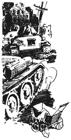 Гусеничные траки звонко лязгали по булыжнику, по трамвайным путям, высекая искры. Пехота, заслышав громовой ход танков, спешила уступить им дорогу. Неистово сигналя, сворачивали в сторону грузовики, и прицепленные к ним пушки беспомощно подпрыгивали на своих круглых шинах.