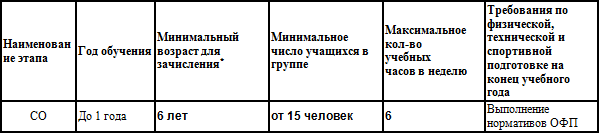 Таблица 1 Режимы учебно-тренировочной работы и требования по физической, технической и спортивной подготовке